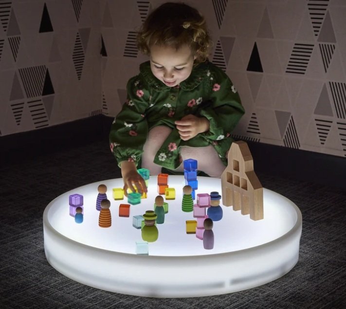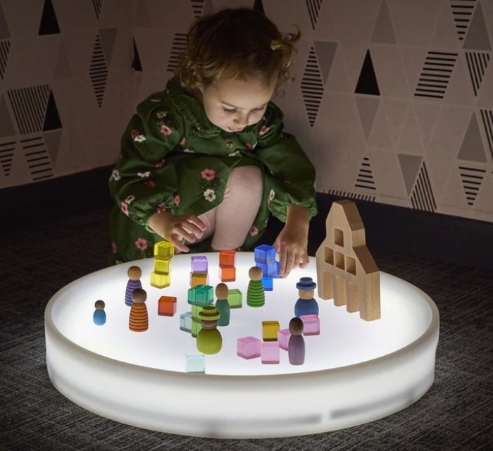 Sukurkite įtraukiančius sensorinius potyrius su 60 cm skersmens apvaliu šviečiančiu padėklu, puikiai tinkančiu ankstyvojo amžiaus vaikų žaidimams su šviesa. Lengvas ir atsparus vandeniui, šis padėklas keičia spalvas vieno mygtuko paspaudimu ir veikia iki 6–7 valandų vienu įkrovimu.